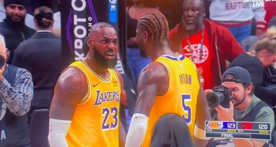 易边再战,第三节湖人33-40被猛龙追回7分,这一节詹姆斯2投1中贡献2分4助攻,里夫斯单节爆砍22分确实尽力了;末节詹姆斯连续两次三分打铁,持球突破杀到禁区却惨遭篮筐大帽,如此画面唏嘘不已,之后詹姆斯三分刷筐而出,关键时刻突破上篮,之后强投惨遭封盖,不过最后时刻,詹姆斯助攻八村垒三分压哨绝杀。